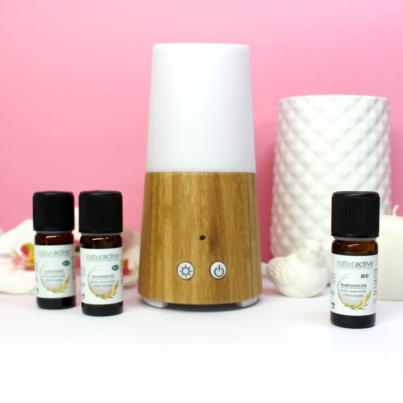 Il est super pratique et design avec sa base en bois et c’est également une lampe d’ambiance neutre ou colorée, il passe d’une couleur à l’autre en douceur, c’est assez hypnotique !! Il a l’avantage de ne pas être trop gourmand en huiles essentielles et je trouve son prix carrément attractif ! (un cadeau qui ferait sensation sans vous ruiner !!). On le retrouve à partir de 25 € sur 1001pharmacies (Pour s’équiper en huiles essentielles, Naturactive a de quoi faire, notamment avec de petits coffrets bien étudiés.)