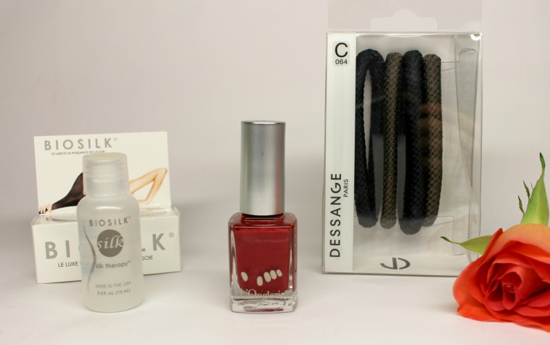 Elastiques Cheveux Dessange : 4 gros élastiques sans métal, qui ont l’air bien costauds et qui sont très épais, le genre de trucs dont on a toujours besoin si on a les cheveux longs ou mi longs !