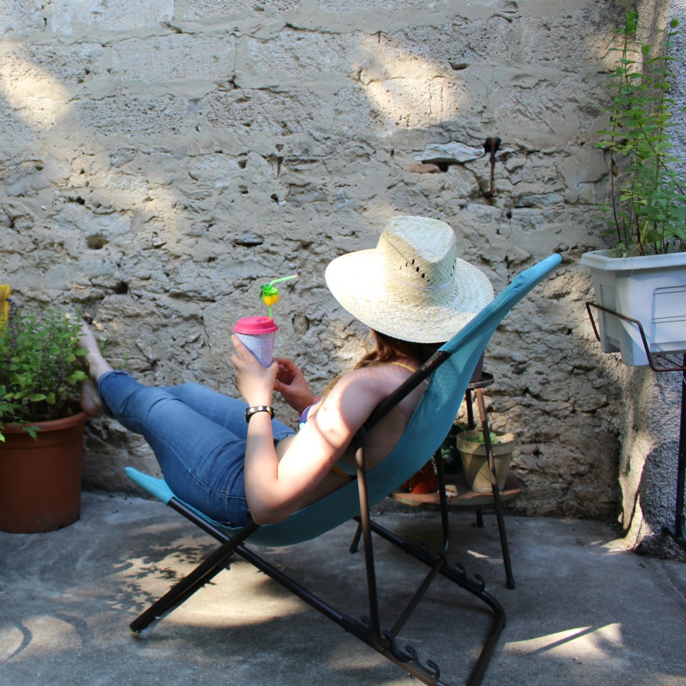 Ce qui est encore plus cool, c’est la largeur généreuse de la chaise et ses 4 positions réglables, qui en font un parfait compagnon de détente / lecture / sieste… au choix ! Le côté ultra compact et léger de la structure une fois pliée la rend parfaitement nomade ! Je pense notamment à mes prochaines sessions plage ou rivière, ce sera top ! En attendant, elle a pris place sur la Terrasse et elle s’y intègre très bien 🙂 On y bouquine, y rêvasse face au Platane géant en écoutant les oiseaux, et elle est également parfaite pour la sieste ou un moment de relaxation ^^