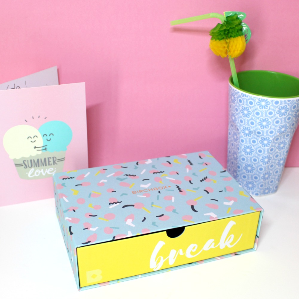 Ce mois ci la Birchbox se présente sous forme de tiroir dans des couleurs fun et estivales ! J’adore ces petits tiroirs hyper pratiques pour ranger plein de choses et celui ci est particulièrement mignon. A l’intérieur, 5 produits et un accessoire :