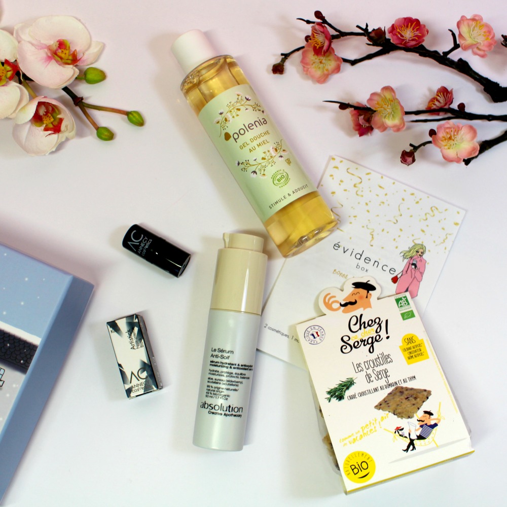 Le temps gris va finir par m’attaquer le moral si ça continue (on n’est définitivement pas faits pour la pluie à Montpellier ^^), mais j’imagine que c’est pareil un peu partout… Je reviens aujourd’hui pour vous présenter une box que je ne connaissais pas mais qui vaut le détour, surtout si vous aimez les produits bios, voici donc le contenu de la Box Evidence et ses produits bio et full size :