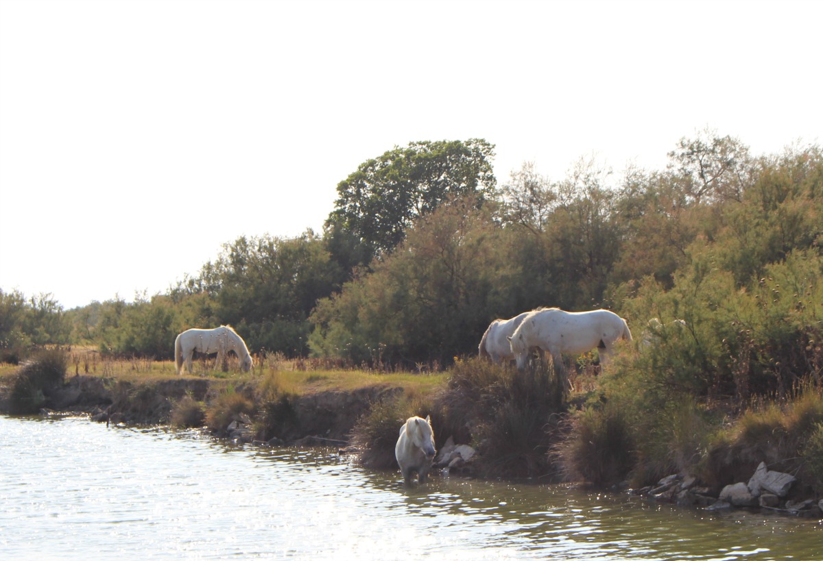 Le premier sentiment que j’ai eu, une fois l’appréhension passée, c’est un sentiment d’extrême liberté, j’avais vraiment l’impression qu’on était les rois du monde !! Seuls, libres, avec notre bateau et le soleil, au calme (ou avec la musique, on avait notre ghetto blaster ^^), dans un décor ultra sympathique (la Camargue et la petite Camargue), on était vraiment bien.