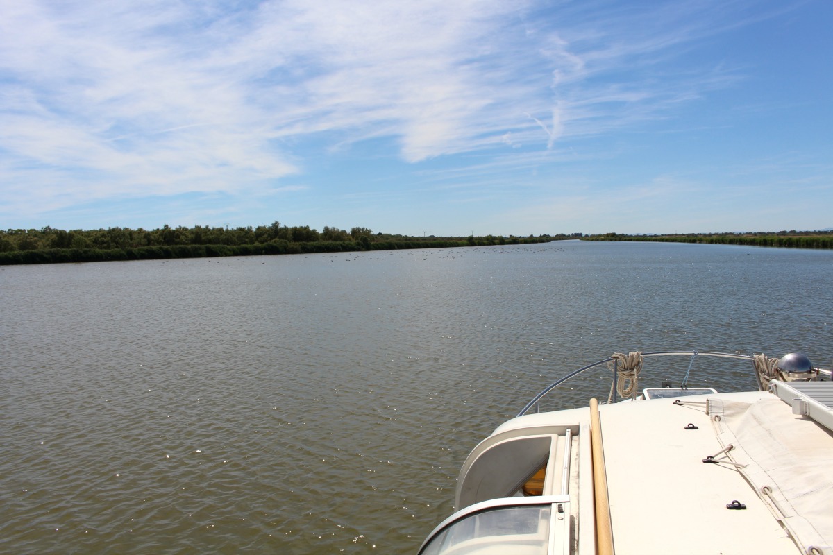 Un inventaire (rapide), quelques nœuds et un demi tour plus tard, on étais partis sur notre bateau pour une découverte de la petite Camargue et le tout sans passage d’écluses, ouf ! Notre mission : un A/R Carnon – Saint Gilles par le Canal du Rhône à Sète.