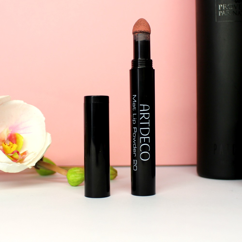 Le Mat Lip Powder (Poudre matte pour les lèvres) est un embout mousse compact et taillé en pointe arrondie d’un côté et une poudre crème matte de l’autre, dans le capuchon. La teinte Spring Day (20) est un nude pêche dont j’adore le swatch, il est bien mat et la tenue est vraiment bonne.