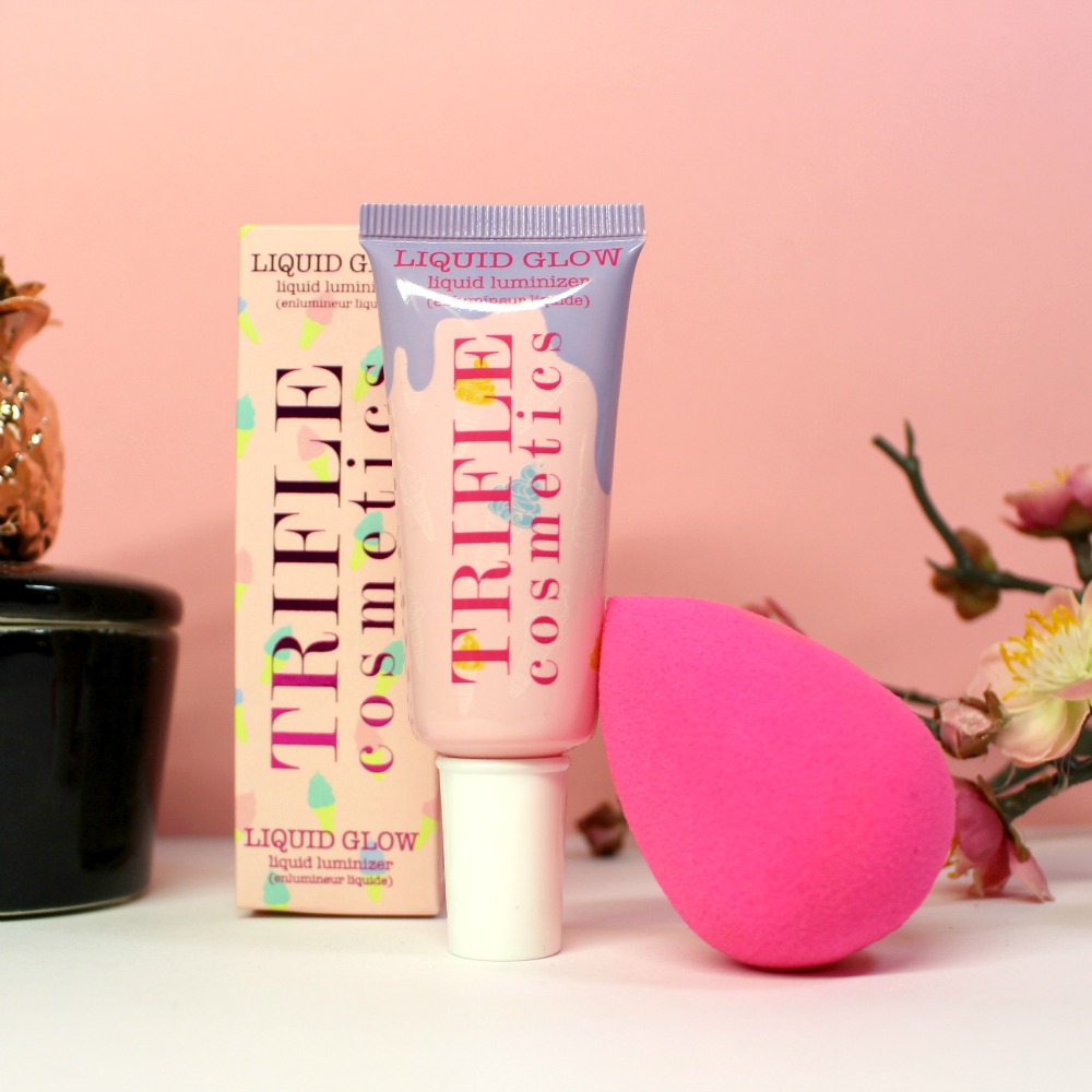 Pour un teint glowy à souhait, rien de tel qu’un Highlighter , ici le Liquid Glow de Trifle Cosmetics, accompagné du célèbre Beauty Blender, l’accessoire indispensable pour travailler son teint !