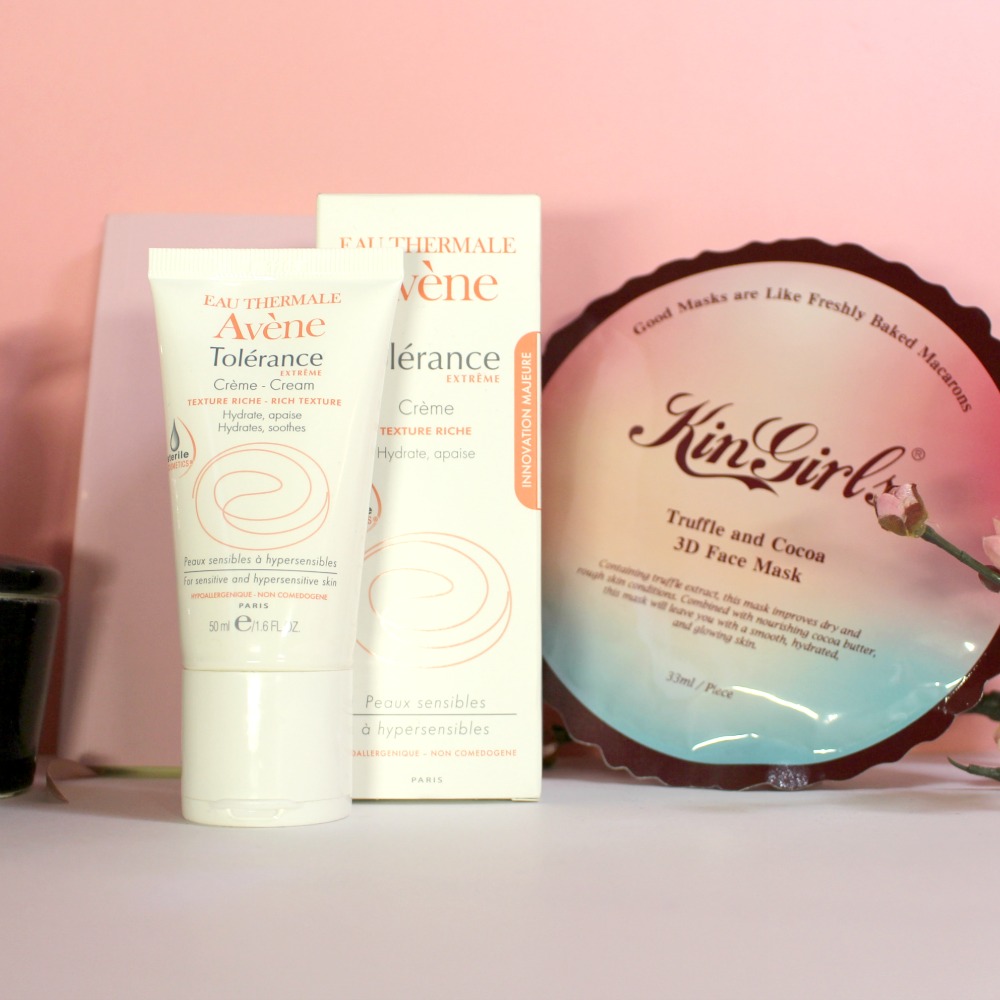 Pour finir, je vous propose un peu de réconfort pour la peau en cette dure période d’hiver avec la Crème Tolérance d’Avène (j’adore cette gamme) version Riche pour apaiser et hydrater, et un Masque Trufle and Cocoa de Kin Girls pour un coup d’éclat bienvenu. Et pour s’organiser au quotidien, un petit carnet rose tout mignon (avec élastique et ruban intercalaire).