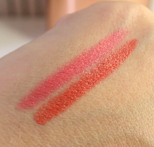 Sur ces photos, je porte les Exquis corail et rose délicat mélangés, les Stylos ombre sable et ébène, et une touche de Terre éclat d’été ^^