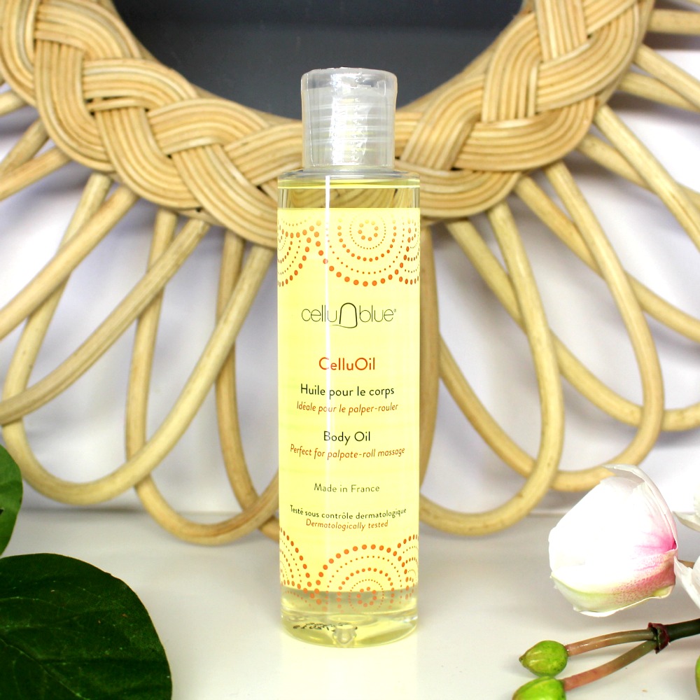Une fois le masque rincée, j’applique une Huile Corps sur ma peau (dont je vous parlerai bientôt) pour passer au plus important, le Massage avec la ventouse (et une alimentation équilibrée, cela va de soi), la base reste, la ventouse (X 2 dans l’idéal, oui comme moi vous avez deux fesses ^^) accompagnée d’une Huile. Cellublue propose pour cela son Huile palper-rouler CelluOil, dont la compo est à 99 % naturelle, elle ne contient pas de silicone ou d’huile minérale mais de l’huile de Graines de tournesol et d’Amande douce qui sont excellentes pour la peau et permettent un massage efficace, et toujours ce doux parfum de Monoï !
