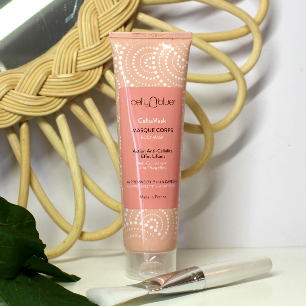 J’applique en suivant le CelluMask (sur peau sèche), c’est un Masque Corps (mon premier ^^) pour aider à réduire la cellulite, l’aspect peau d’orange, qui lui aussi sent le monoï ! Il contient de l’argile blanche, ce qui le rend particulièrement facile à appliquer et étirer (avec le pinceau fourni ou à la main), de la caféine et du Pro-sveltyl (issu du Lotus sacré) qui réduit le stockage des graisses, tonifie les tissus, connu comme un puissant anti-cellulite.