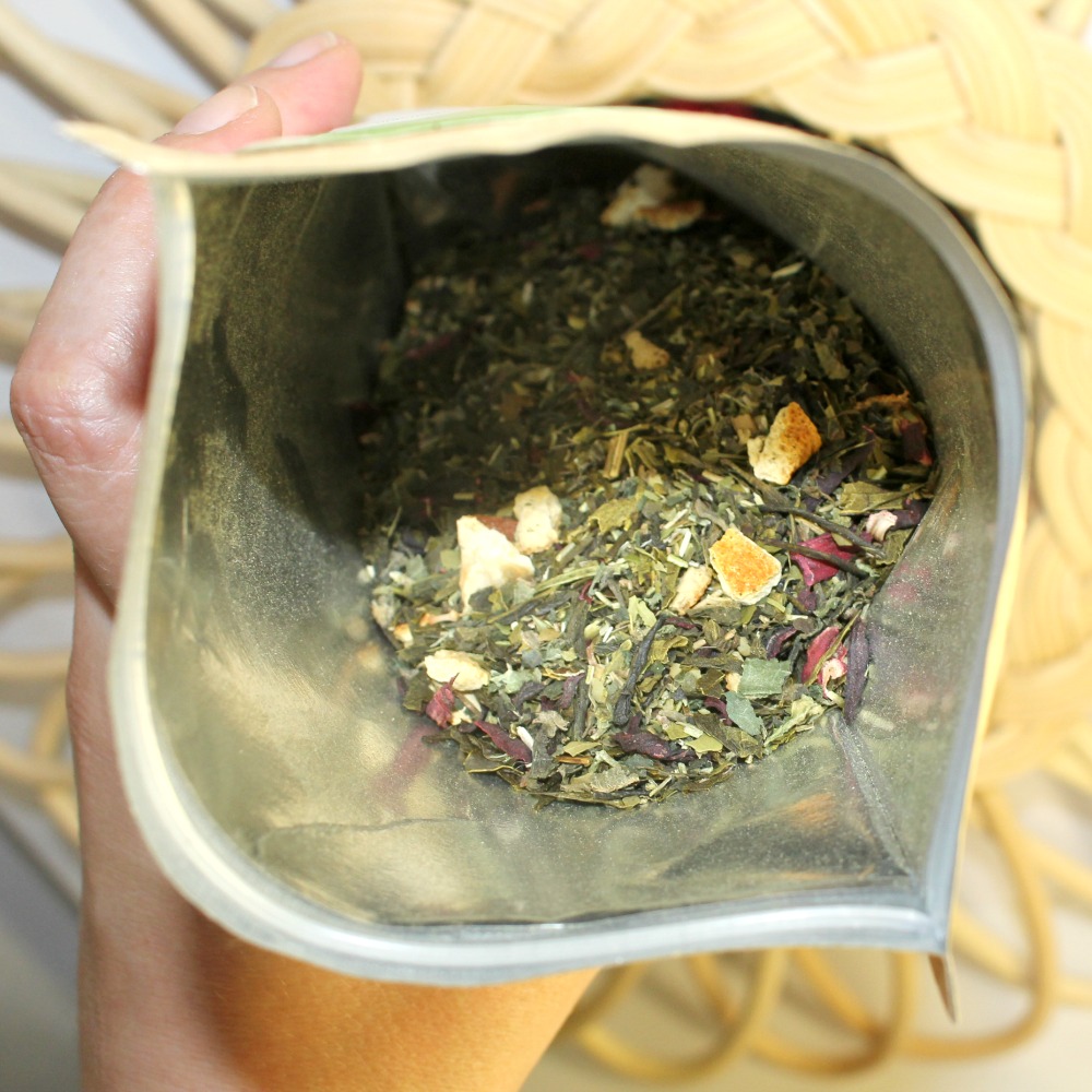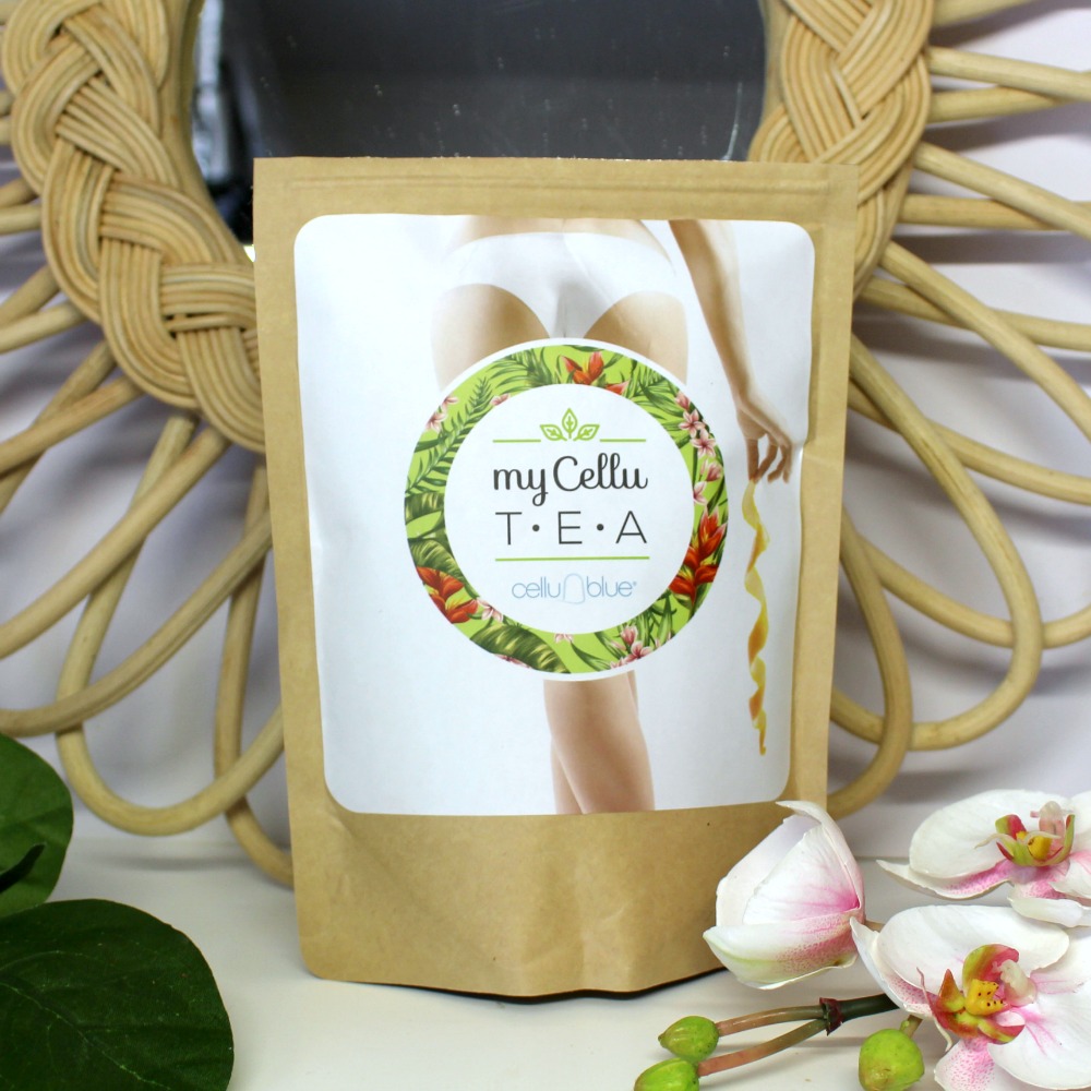 Une fois le massage effectué, comme je vous le disais plus haut, il est conseillé de boire beaucoup, et de ce côté là aussi, Cellublue a tout prévu ! My Cellu TEA est un thé anti cellulite, mélange de thé vert, orange douce, maté, ortie, romarin et hibiscus, des plantes connues pour brûler, éliminer, détoxifier, drainer, en bref, aider à agir contre la cellulite. Autant vous dire qu’en ce moment, je le bois plutôt froid ! Je le laisse infuser longtemps (au moins 5 minutes), ce qui permet de profiter des plantes qu’il contient au maximum ! J’en bois tout au long de la journée quand je suis à la maison et j’aime bien son goût de plantes avec une pointe d’amertume.