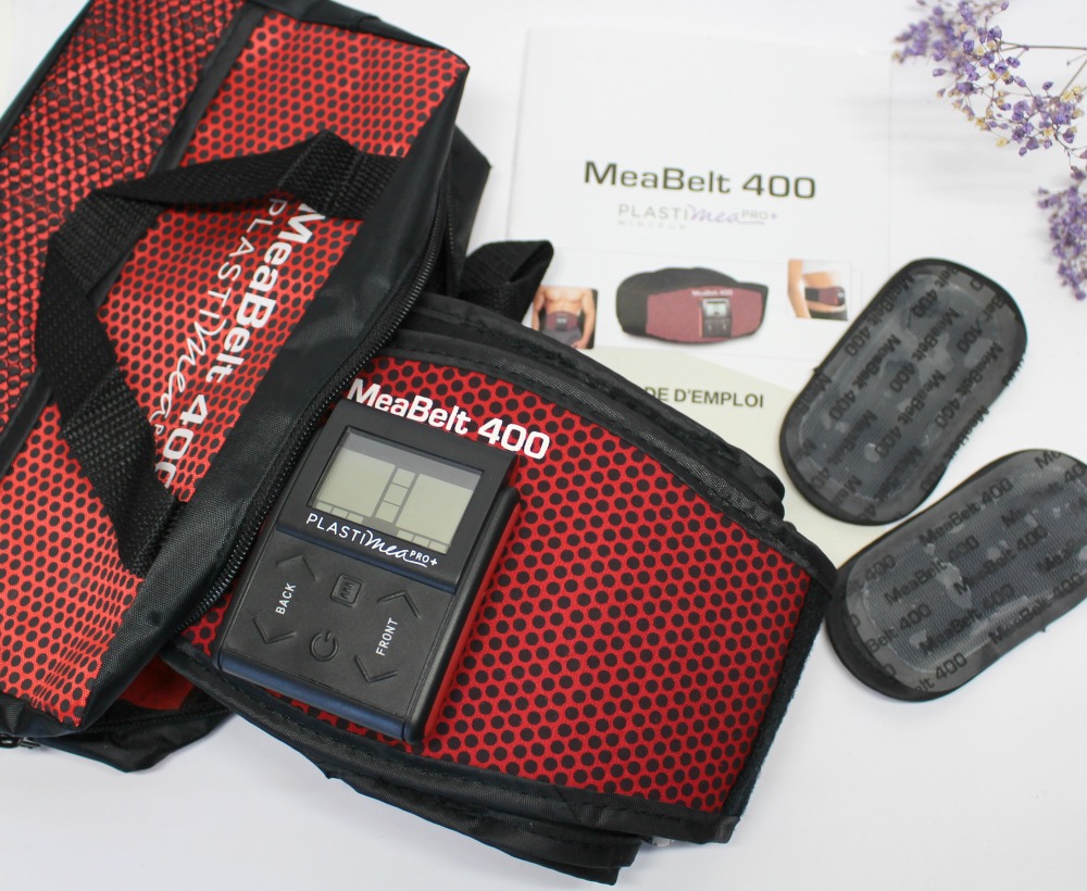 Le site propose de nombreux produits pour la beauté, la santé, la minceur… et dans la catégorie Minceur (très fournie et complète), il y avait cette Ceinture d’électro stimulation de la marque du site, la MeaBelt 400, le genre d’accessoire que j’étais vraiment curieuse de tester depuis longtemps sans oser franchir le pas ! Car si vous pratiquez un sport, ou que vous courrez régulièrement ou encore si vous faites des exercices à la maison, je suis sûre que vous n’aurez rien contre une petite séance bonus devant votre ordi, la télé ou même en faisant du ménage, du rangement… On peut franchement tout faire avec la ceinture en place. Et si vous n’êtes pas sportive du tout, et bien j’ai envie de dire que c’est mieux que rien ^^ Je n’ai pas trouvé le mode d’emploi d’une simplicité exemplaire (ça manque de dessins) mais la mise en place et l’utilisation sont assez intuitives dans le fond et la ceinture est très sécure, (elle s’arrête et bipe dès qu’elle n’est pas bien place) on ne peut pas se tromper. Il suffit de fixer les pads sur les pressions de la ceinture devant et derrière, puis de coller les patchs en silicone sur les pads, et d’installer le boîtier de contrôle devant au centre de la ceinture et le tour est joué ! On peut moduler l’emplacement des pads grâce aux scratchs qui les font rester en place, moi j’aime bien quand les pads sont bien symétriques ^^ Ensuite on règle le choix de l’exercice et son intensité. Le guide d’utilisation est très complet sur la programmation du boîtier et les possibilités d’exercices. La ceinture est réglable, on eut donc la disposer à différents endroits et elle convient à tout le monde quel que soit son tour de taille.