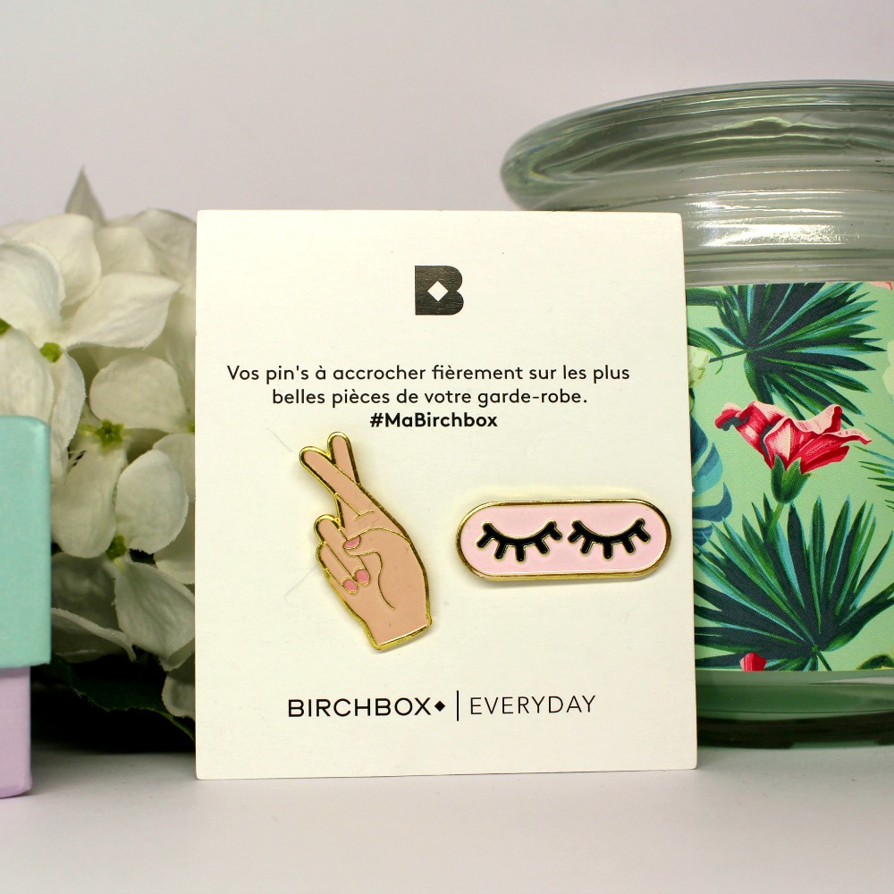 Birchbox est toujours la moins chère du marché (13 € / mois) et BON PLAN si vous passez par mon lien de parrainage ICI, une plaquette de 6 Pin’s nous sera offerte à chacune (marche aussi avec le code PINSUP) et on gagne aussi 5 € à dépenser dans l’eshop Birchbox !! D’ailleurs j’ai profité de la box pour passer une commande sur le shop dont je vous reparlerai 😉