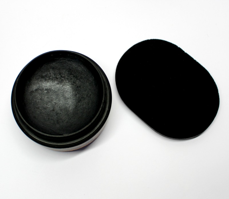 C’est un savon noir solide dans un gros pot vendu avec une éponge noire. On vient prélever de la matière avec l’éponge humidifiée (elle durcit entre chaque utilisation) pour l’appliquer sur le visage, ça sent merveilleusement bon l’amande, l’odeur exacte de la colle Cléopâtre pour celles qui connaissent ^^. On masse une petite minute et on rince !