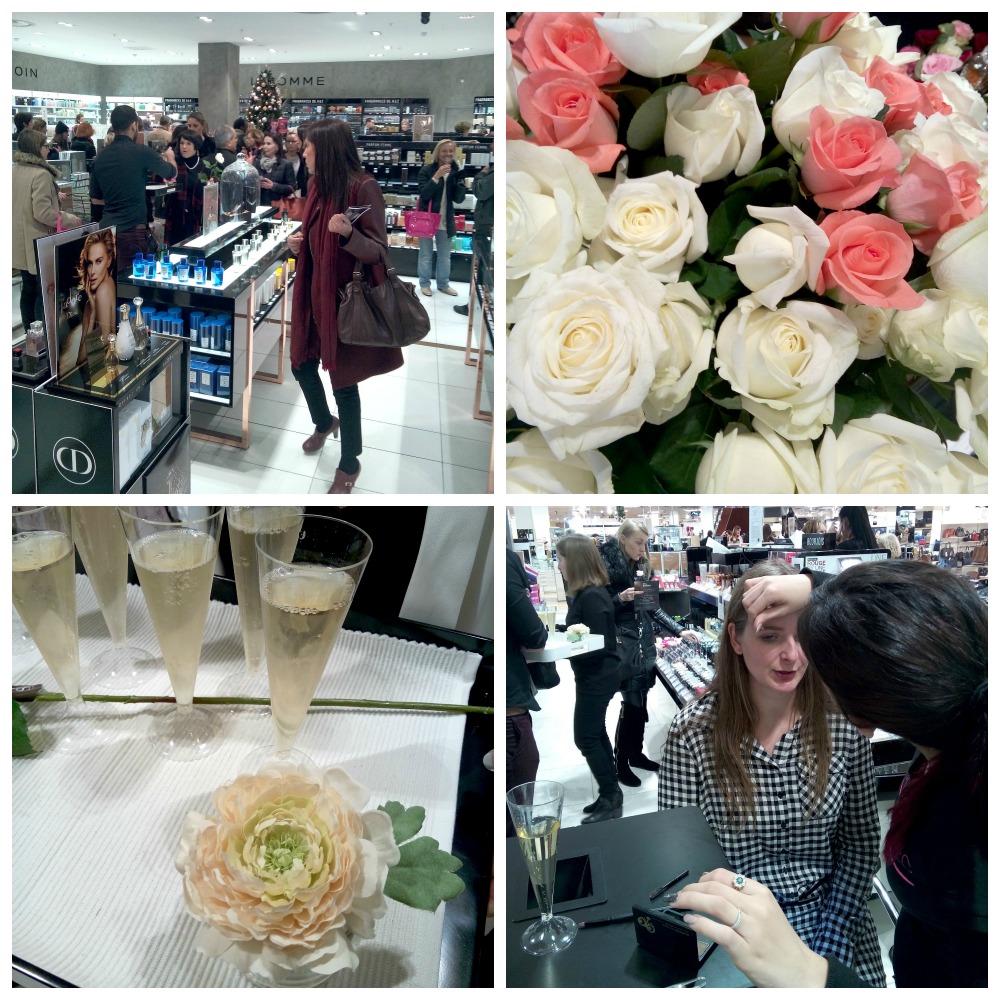 Il y a quelques temps (avant Noël !), je me suis donc rendue à un afterwork pour découvrir le nouvel Espace Beauté des Galeries Lafayette, et si vous vivez à Montpellier ou dans le coin, vous savez qu’elles sont situées dans le centre commercial du Polygone. L’afterwork était l’occasion pour les clientes et quelques blogueuses du Sud de découvrir le nouvel agencement de l’espace, les nouvelles marques et la mise en valeur des grands classiques, avec ateliers beauté au programme (sourcils, manucure, gravure de flacon…), surprises, fleurs et champagne ! Je trouve que c’est une attention sympa pour la clientèle (avec -20 % dans tout l’espace pour l’occasion) et l’occasion rêvée pour se faire chouchouter et conseiller le temps d’une fin de journée. Ici la jolie Georgette en plein atelier sourcils 😉