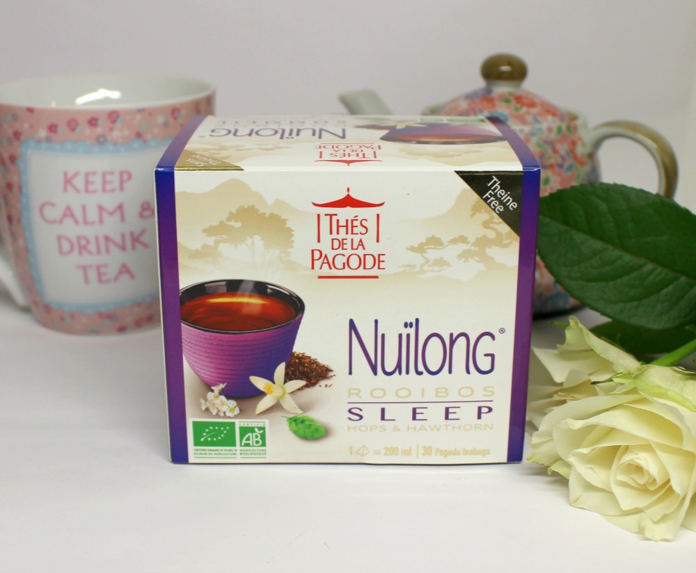 Pour finir la journée, un peu avant d’aller au lit, on boit une infusion Nuïlong avec M.Happy, un rooibos à base de Houblon (connu pour ses effets sédatifs), de fleur d’oranger et d’aubépine pour leurs propriétés apaisantes et relaxantes, qui favorisent l’endormissement… avec un doux parfum de fleur d’oranger, cette tisane est le compagnon idéal de la nuit ! (19,50 € les 30 sachets).
