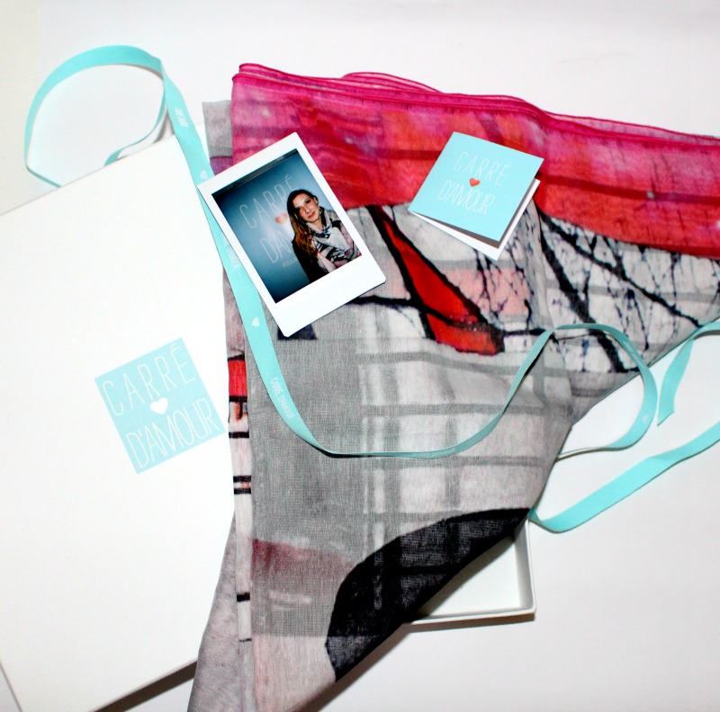 Nous pouvions choisir le foulard qui nous plaisait parmi une sélection et j’ai opté pour un modèle graphique, un collage noir rose et blanc, (à découvrir en entier ici) ensuite on se faisait prendre en photo avec et on repartait avec son petit pola, très sympa !