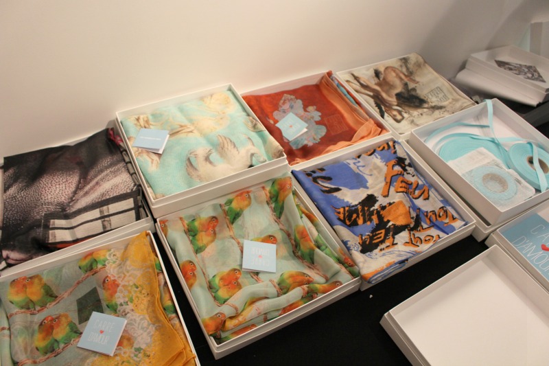 La créatrice de la marque Carré d’Amour était présente avec son équipe, une véritable passionnée du foulard, qui souhaite proposer des carrés de qualité dans des matières douces et nobles (Twill de soie, crèpe de chine, étamine de laine et de coton), fabriqués en France avec de très belles finitions. Plusieurs formats sont possibles dont un format géant avec des motifs originaux qui sortent de l’ordinaire. La petite cerise sur le gâteau, c’est la possibilité de faire imprimer un message unique dessus…un cadeau qu’on n’oublie pas et qui nous accompagne longtemps, de l’excellence made in France comme j’ai plaisir à en découvrir !