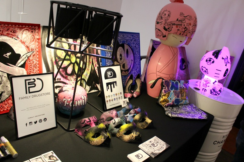 A l’étage supérieur, deux marques mode / lifestyle nous attendaient : Family Drugstore avec ses customs d’artistes dans l’esprit street art / graffity. Le concept est simple et génial, vous pouvez faire customiser n’importe quel objet de votre choix par l’artiste que vous désirez parmi ceux que vous propose Family Drugstore.