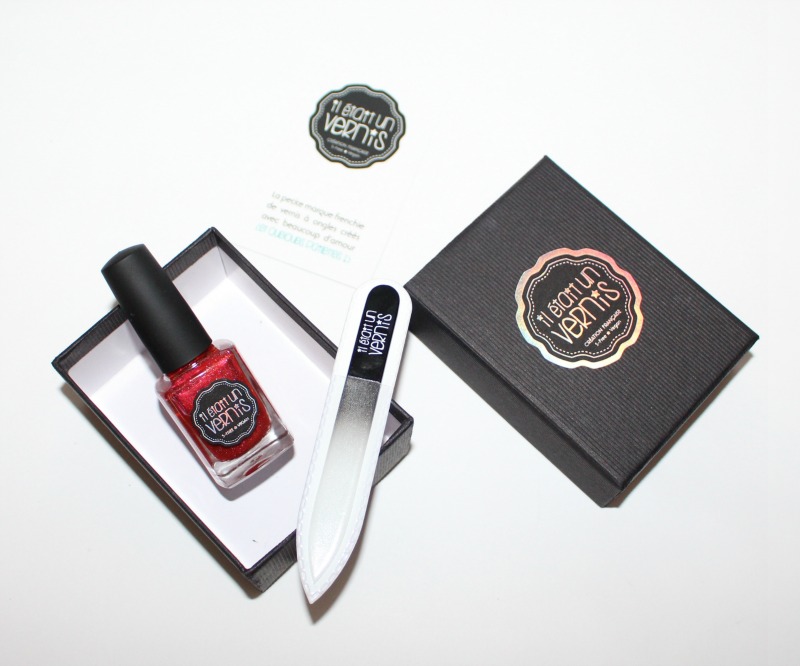 Il existe de nombreuses teintes vraiment démentes comme notamment le jaune moutarde Hello sunshine qui est absolument canon ! Je n’ai malheureusement pas eu le temps de me faire poser de vernis (alors que pour une fois j’avais prévu le coup en gardant mes ongles nus ^^) mais je vais pouvoir me rattraper avec le joli petit coffret trouvé dans le Poulette Bag qui contenait une lime en verre (je n’en avais pas, je suis trop contente !) et un vernis en teinte No Comment (un rouge cerise gourmand) de la nouvelle collection de Printemps Tales of Love (notez qu’à partir du 1er mars pour la sortie de la nvelle collection, vous avez -10% sur la boutique avec le code POULETTECARNAVAL). Au passage, les packagings et le graphisme de la marque sont trop mignons.