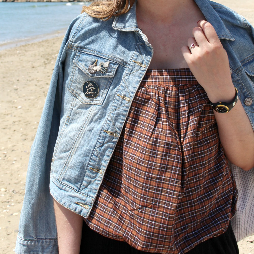 J’avais apporté aussi mon blouson en jean mais honnêtement, il était un peu de trop à ce moment là de la journée ! Je l’ai pimpé avec des pin’s Wear Lemonade dont je suis complètement fan (gros love pour les abeilles, depuis toute petite).