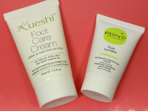 Je trouve l’ensemble plutôt sympa, je suis ravie de pouvoir découvrir Lamazuna (même si je trouve le shampooing minuscule), le shampooing sent le pin, c’est frais et très naturel comme odeur. La compo du gommage Aïny m’emballe beaucoup, c’est vraiment clean et ce petit format est parfait à emporter en week-end. La crème pour les pieds Kueshi a elle aussi une compo très sympa, mais j’avoue que mes pieds n’ont besoin de rien, ils vont très bien (normal, je ne les maltraite jamais dans des talons de 12 ^^).
