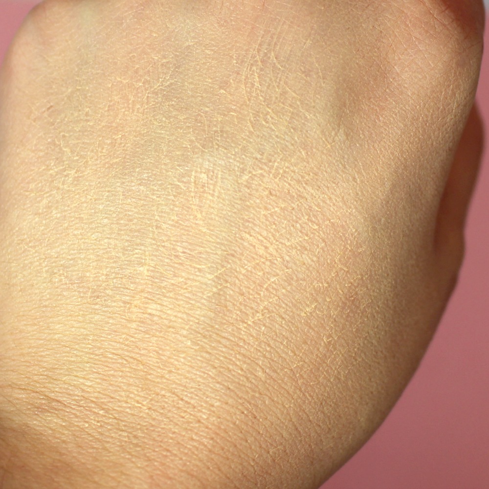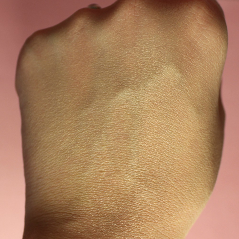 Par contre si je tapote, le rendu est uniforme, légèrement poudré, naturel mais couvrant… Nickel. J’ai une bonne cicatrice au milieu de la main, que l’on n’aperçoit même pas sur la photo !