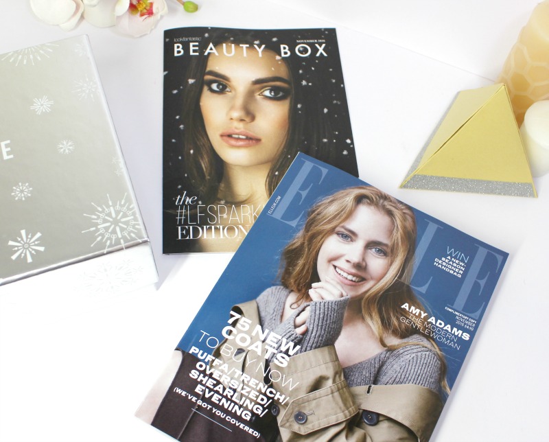 Pour cette édition, la lookfantastic Beauty Box s’est parée d’argent et de flocons, c’est festif et ça fait direct penser à Noël ! Comme tous les mois, la box est accompagnée du Mag Look Fantastic et du ELLE anglais (sympa pour connaître les tendances du moment là bas et ce que les anglaises nous envient 😉