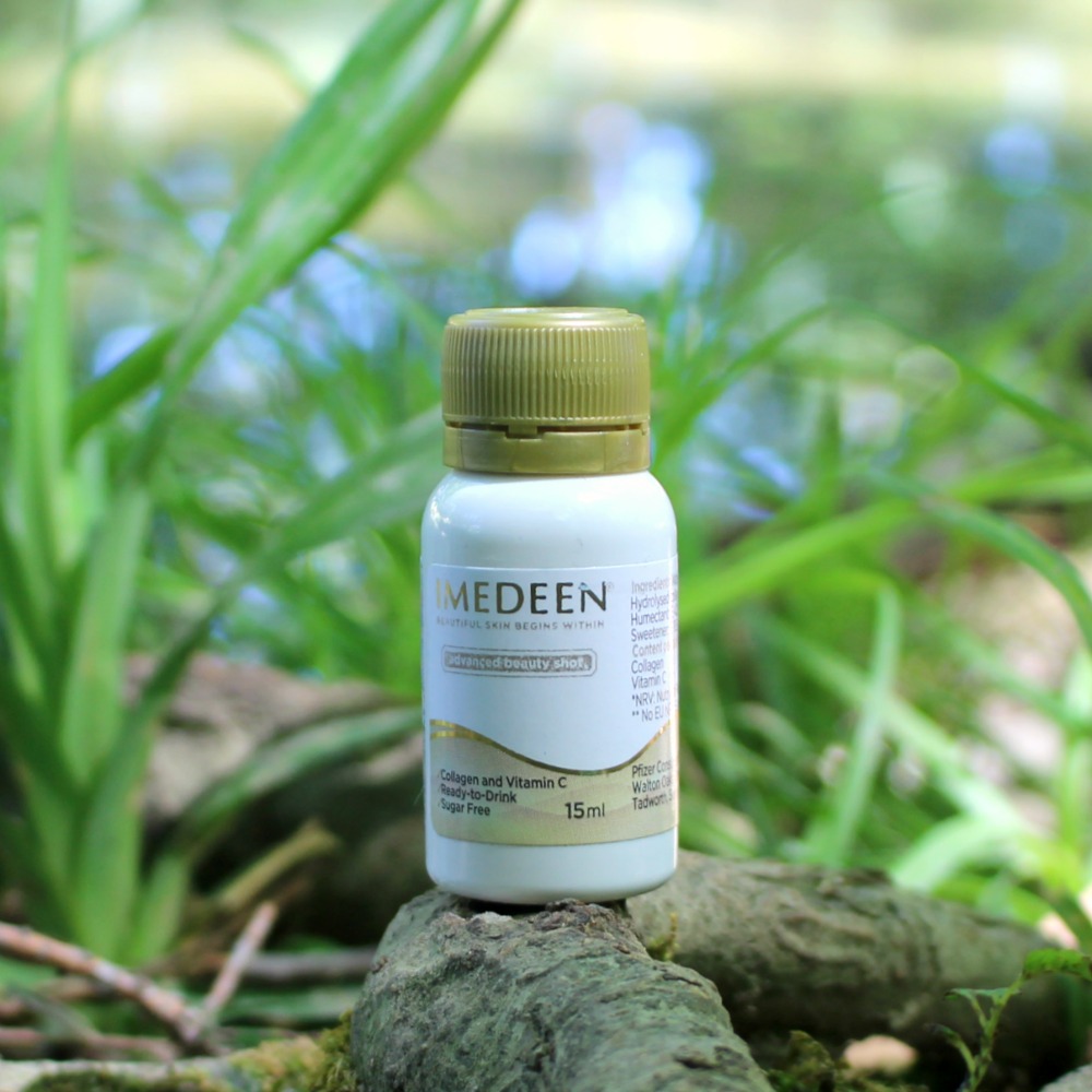 Pour finir, on trouve une monodose de complément alimentaire à boire à base de collagène et de vitamine C de la marque Imedeen, je suppose que ça marche plutôt en cure mais pourquoi pas !