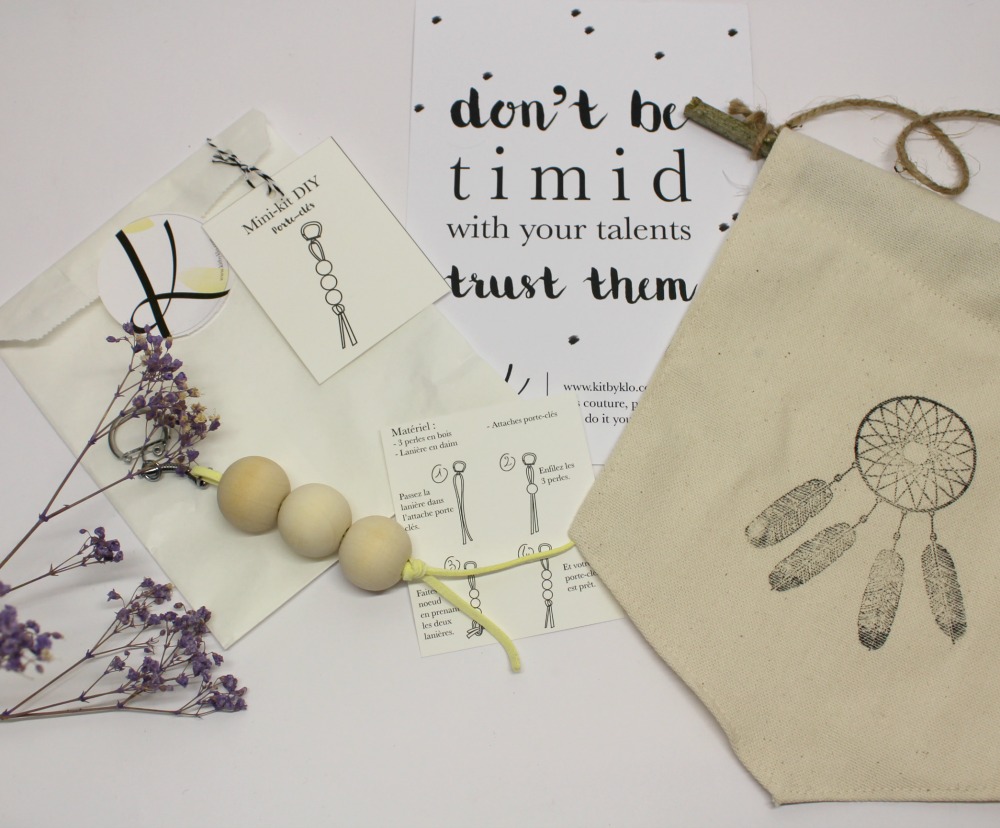 Comme je trouvais l’objet génial et que Klo a du galérer à nous préparer ces petits fanions et les petits bouts de bois pour les faire tenir, je ne voulais pas gâcher son boulot en faisant n’importe quoi, mais j’ai trouvé cet atelier génial et j’adore son concept de kits DIY ou patrons fournis avec tout ce qu’il faut pour les réaliser.