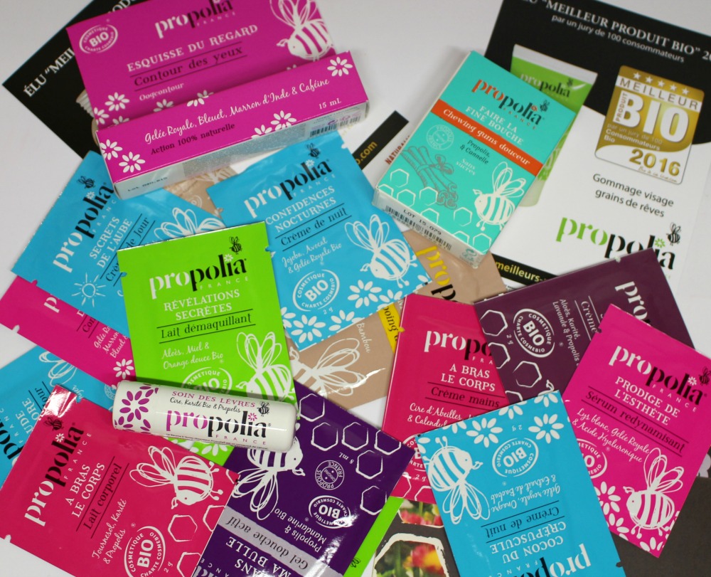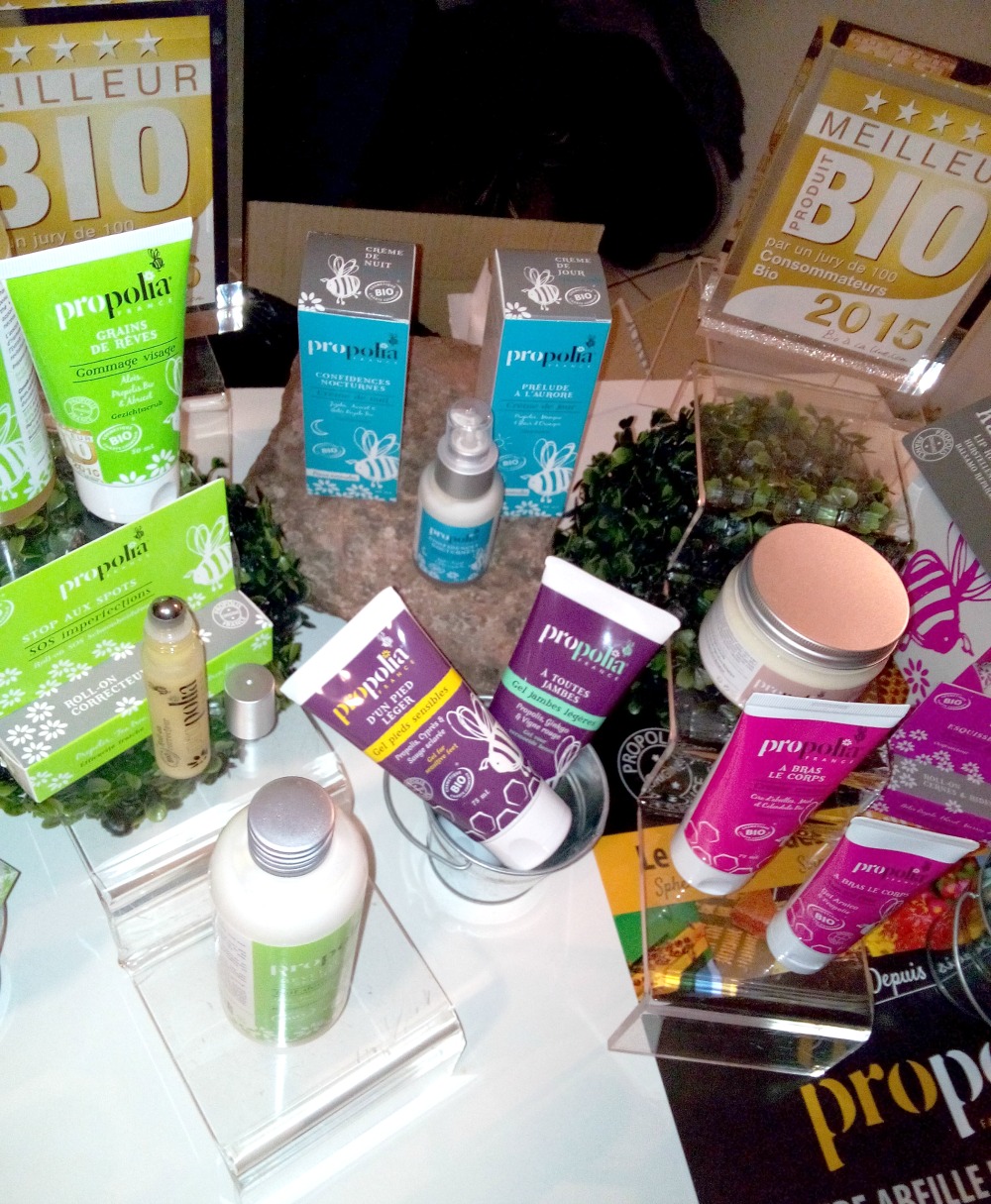 Nous avons ensuite enchaîné avec la découverte de Propolia, une marque bio spécialiste des produits de la ruche (comme son nom l’indique) et basée à Clermont l’Hérault (tout près de Montpellier !!). Je suis dingue du miel et de ses déclinaisons en cosmétiques, et la propolis est aussi mon amie, cette marque aux packagings frais et rigolos avait donc tout pour me plaire (et locale en plus !!).