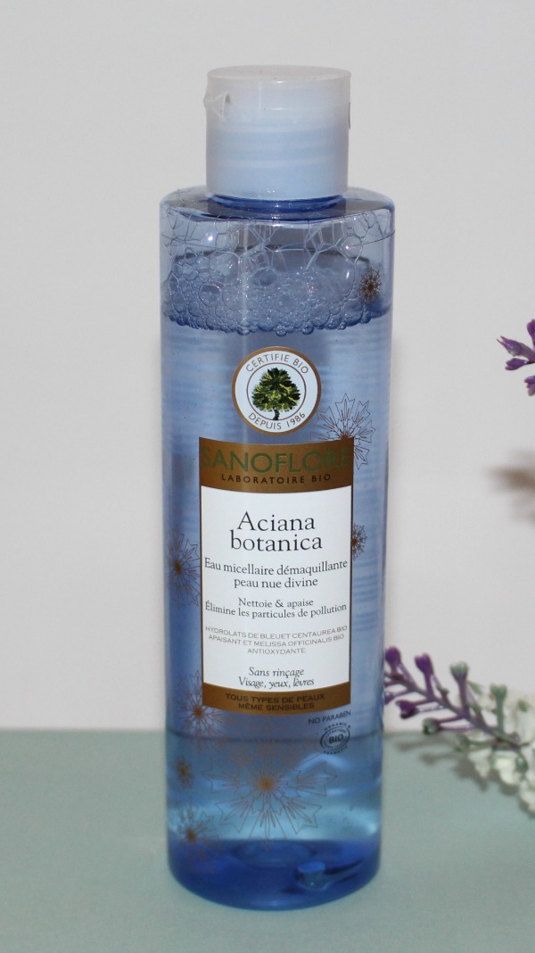 Dans la même gamme et pour parfaire le démaquillage du visage comme celui des yeux, j’utilise L’Eau Micellaire Démaquillante Peau nue Divine toujours de la gamme Aciana Botanica au bleuet. Elle contient de des Eaux de rose, de bleuet et de mélisse, parfaites pour apaiser, régénérer et prendre soin des peaux sensibles (la mélisse est aussi top pour les peaux matures).