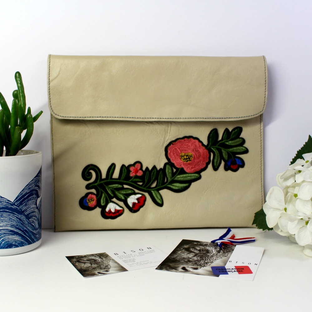 La tendance des patchs brodés n’a pas échappé à Bison et nous avons la chance de trouver une jolie pochette de cuir unique signée de Catherine Dupon et patchée. Si vous êtes sur Paris et que vous rêvez de LA pièce en cuir qui vous ressemble, c’est eux qu’il faut aller voir !