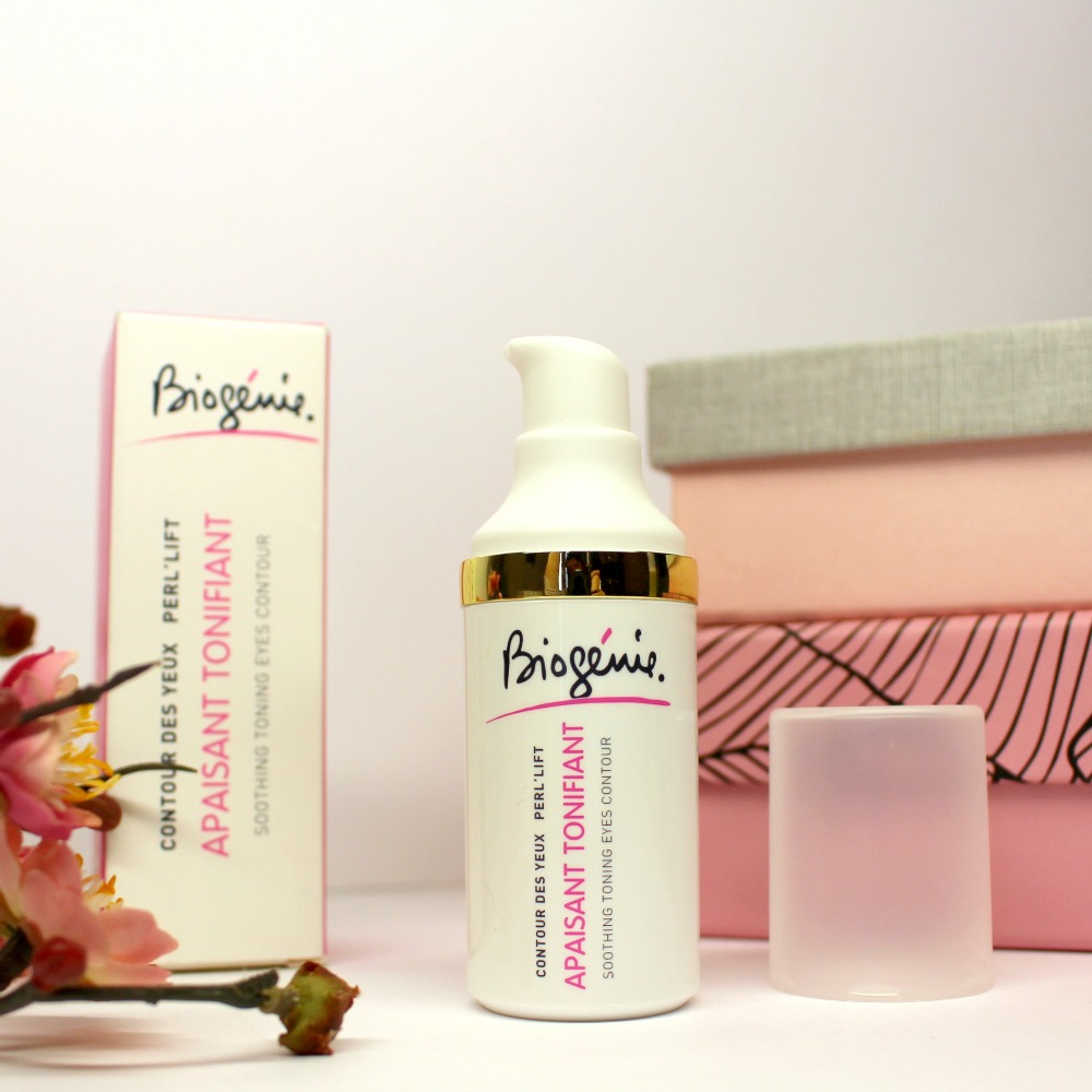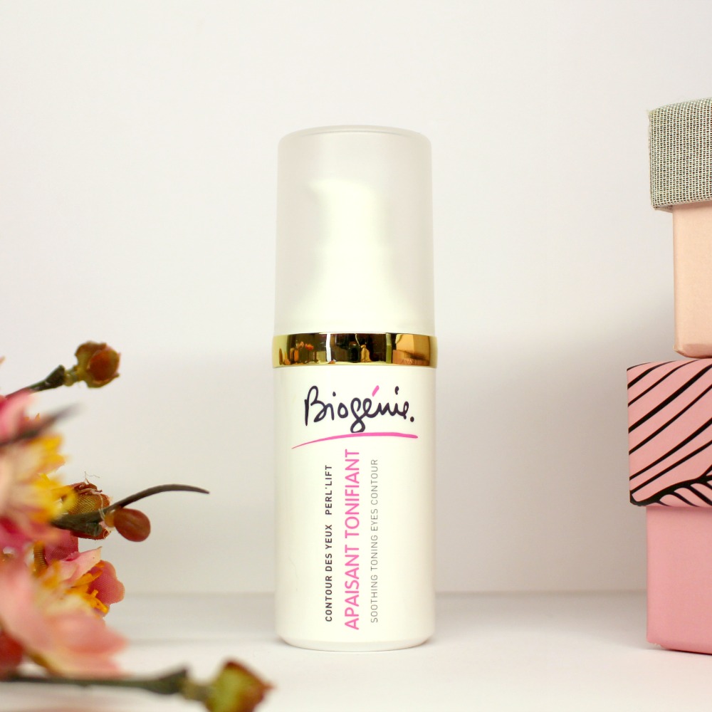 J’aime beaucoup ce produit que j’utilise matin et soir, j’applique mes contours des yeux toujours de la même manière : d’abord je tapote (doucement) avec la pulpe du doigt du coin interne vers le coin externe pour faire pénétrer, puis je lisse sans tirer la peau. Il contient en grande quantité 2 ingrédients naturels connus pour le contour des yeux : de l’hamamélis, pour son action sur la micro circulation et son côté apaisant, et l’extrait de concombre pour le côté décongestionnant et calmant. Il contient de l’huile de jojoba pour nourrir et équilibrer et de l’acide hyaluronique pour retenir l’hydratation. Ce contour des yeux m’apporte une chouette sensation de fraicheur / hydratation le matin, et réveille le regard. Il a une contenance de 20 ml (généreux pour un CDY). 39,50 € sur le site de Biogénie.