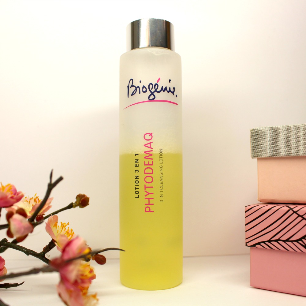 J’ai été ravie quand Biogénie m’a proposé de tester quelques produits car d’une part je ne connaissais pas vraiment, et d’autre part, certaines compositions me semblaient vraiment sympas ! Cette marque made in France née en Charentes existe tout de même depuis plus de 20 ans et est déjà distribuée dans + de 40 pays. Je me démaquille la peau tous les soirs et si vous suivez ce blog, vous savez que j’aime bien faire ça en deux étapes, une étape démaquillage suivie d’une étape nettoyage, pour une peau vraiment nette avant de passer aux soins. Mais il y a des soirs où franchement, je n’ai pas la force (quand je finis à 2h du mat par exemple ou en rentrant d’une grosse soirée) et c’est là que cette Lotion 3 en 1 PHYTODEMAQ de Biogénie opère son petit miracle !