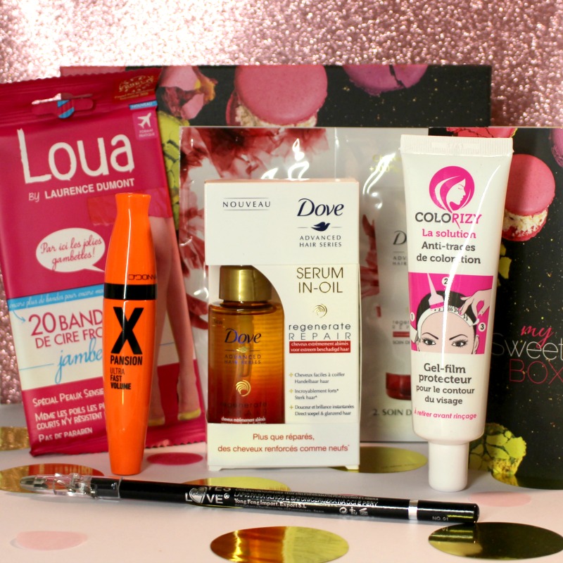 La box est très mignonne avec ses macarons et elle contient 5 produits sympathiques, ainsi que le mini mag My Sweetie Box . Voici donc le contenu de la box du mois de Noël :