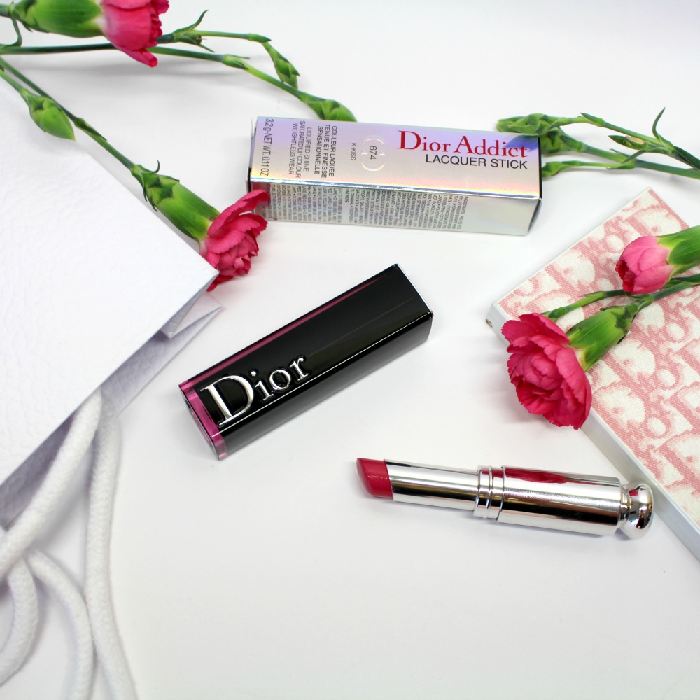 La teinte K Kiss 674 est un beau rose fuchsia très printanier, que j’adore porter en ce moment, il fait de jolies lèvres et donne bonne mine ! Il tient assez bien pour un rouge hydratant, et s’estompe joliment sur les lèvres, mais il transfère (comme tous les rouges hydratants ^^). C’est mon gros chouchou du moment, je ne le quitte plus ! 35,50 € sur dior.com ou chez Sephora