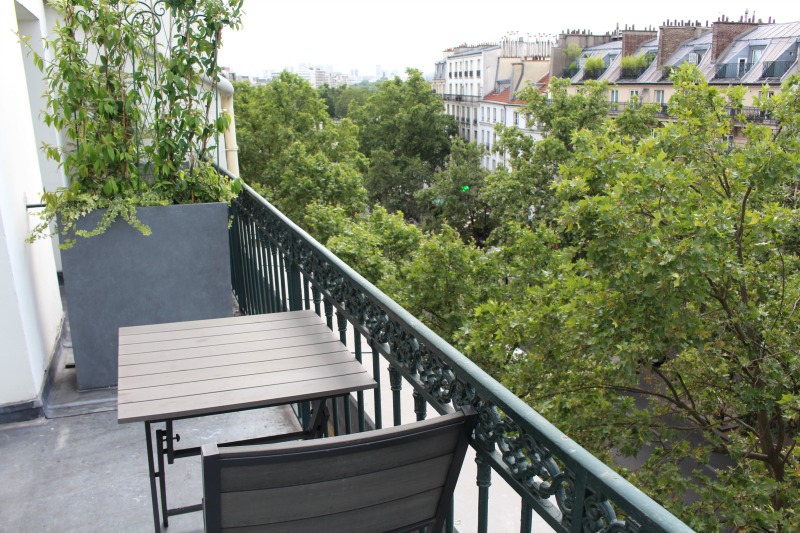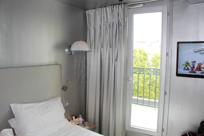 Outre la déco très lumineuse et futuriste, le gros avantage de cette chambre, c’est sa petite terrasse / balcon et comme il faisait très beau pendant les 2 jours, c’était vraiment très cool de surplomber Paris comme ça !