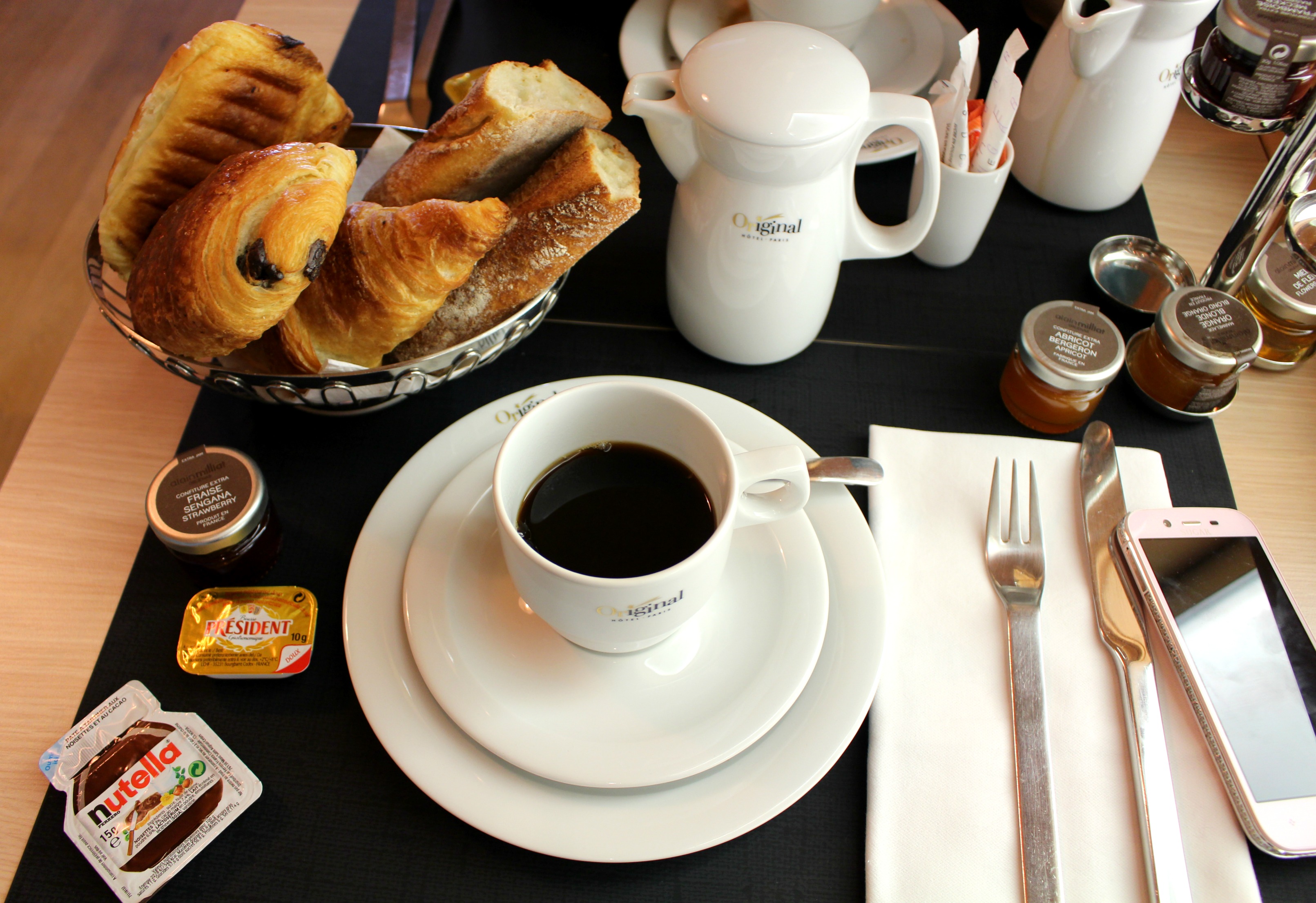 Par contre on a bien profité du petit dej’ le lendemain matin, un petit déjeuner à la française avec pain frais, viennoiseries bios, jus de fruit frais pressés, café, et boissons chaudes de votre choix mais aussi oeufs brouillés, bacon, jambon, fromage…On en est restés aux bonnes vieilles tartines et aux viennoiseries, et c’était parfait !