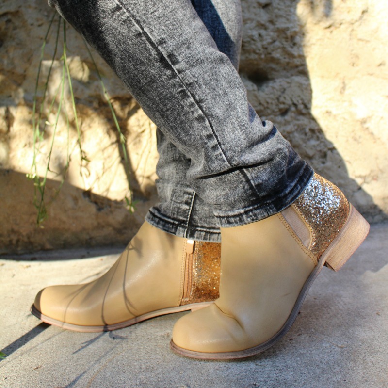 J’aime beaucoup la semelle imitation bois, leur couleur caramel, qui change un peu et bien sûr les paillettes, le petit détail qui change tout 😉 Elles sont hyper confortables, avec élastique d’un côté et fermeture éclair de l’autre.