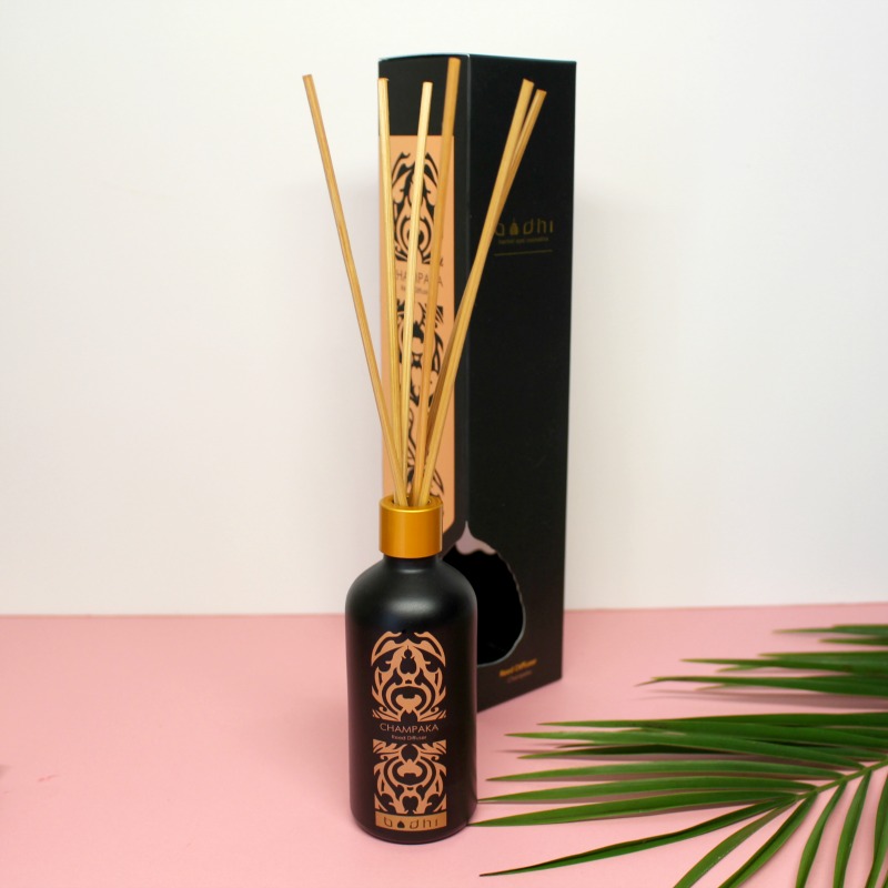 J’ai complètement craqué sur les packagings de cette marque, et c’est pour cette raison que je vous en parle un lundi 😉 Pour commencer, j’ai été bluffée par les produits pour parfumer son intérieur, comme le Diffuseur Champaka que j’ai reçu. Le principe est simple : des tiges de bois qui trempent dans de l’huile parfumée et qui diffusent la senteur quand on les retourne, plus on retourne souvent les bâtonnets, plus la senteur sera intense. L’objet est non seulement magnifique mais je suis aussi impressionnée par la diffusion !! J’ai dû retourner les tiges 2 fois et le parfum est vraiment présent dans la pièce, je le sens par intermittence et dès que je me rapproche un peu de l’objet, ça diffuse un max ! Et cette senteur, on en parle de la senteur ? Un bouquet de magnolias, un parfum frais, floral, subtil… je suis complètement sous le charme et je trouve la fragrance vraiment travaillée. Si vous cherchez un objet à la fois déco et utile, foncez !! Parce qu’en plus d’être canon, ce diffuseur a un prix plus que raisonnable vu la qualité : 19 € sur le site Bodhi. (il existe 11 senteurs différentes pour les diffuseurs)