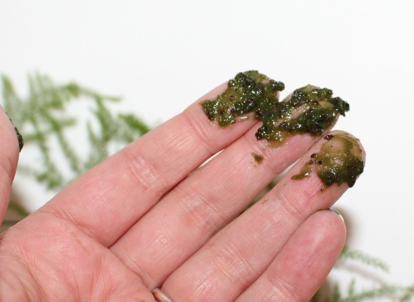 Quand vous ouvrez le pot, vous êtes directement plongée dans une forêt de conifères, ça sent exactement le pin et le sapin, et j’adore cette odeur (qui me rappelle quand j’étais petite chez mes grands-parents ^^). C’est une pâte verte qui contient des grains de différentes tailles et qui gomme hyper efficacement (marre des scrubs mous du genoux). Il contient de l’huile de cèdre bio (puissant anti-âge et anti oxydant), du genévrier de Sibérie, des sels de Sibérie, de l’extrait d’argousier de l’Altaï (riche en oméga7, acides gras et flavonoïdes)… la liste est longue et le résultat est là : une peau douce, purifiée, plus lisse, détoxifiée en profondeur, mais également nourrie au passage…