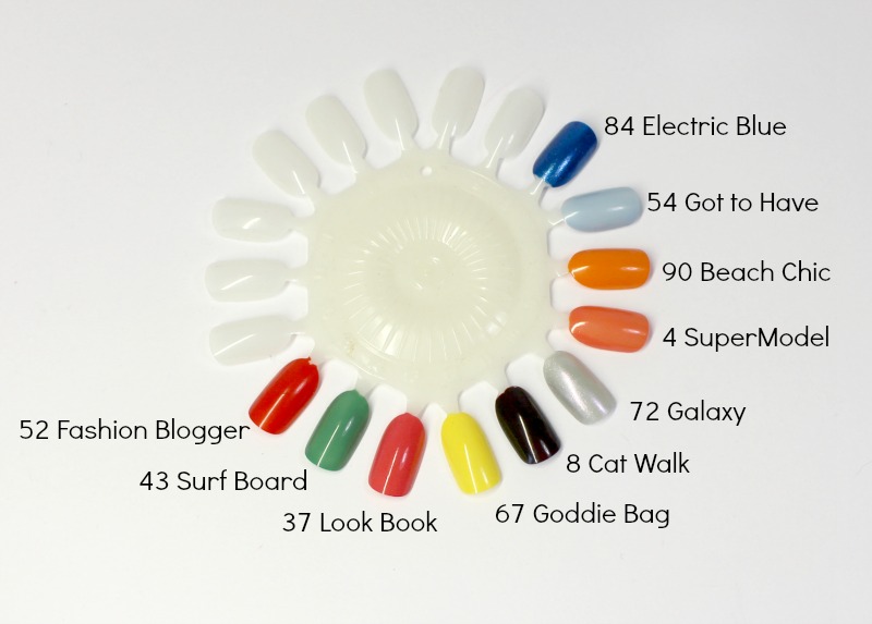 Goddie Bag est un jaune poussin éclatant, parfait pour rayonner en été ! Beach Chic est un bel orange qui claque, Supermodel est un corail, un orange avec une pointe de rose. Look Book est un rose corail, un rose avec une pointe de orange ^^ Fashion blogger est un rouge très légèrement brique.