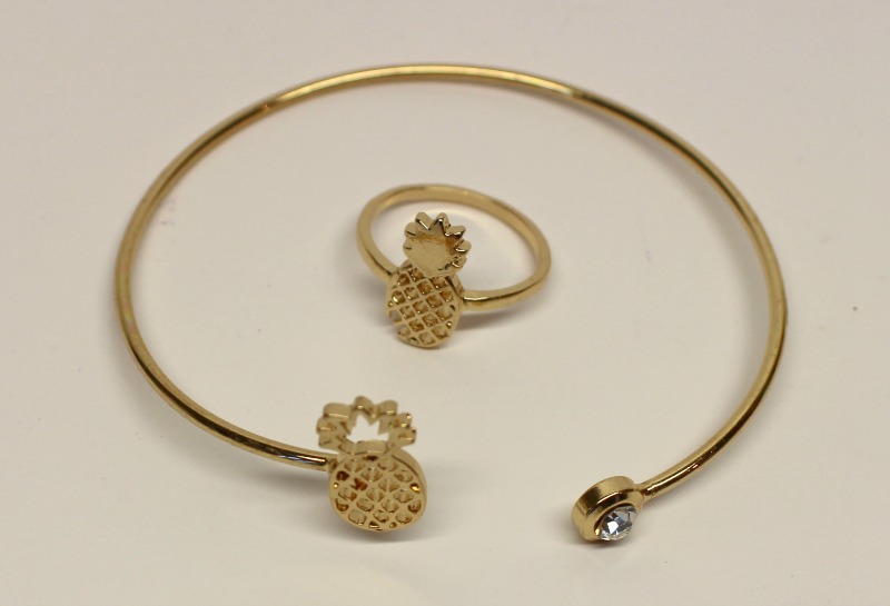 Duo Bague + Bracelet Ananas 3,50 € : Il manque un petit bout de métal au bas de la bague (ça ne se voit pas vraiment, elle est tout à fait portable comme ça) mais le bracelet est parfait, j’adore ce petit duo (à ne pas forcément porter en duo) très estival !