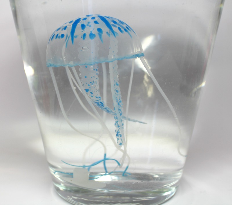 1 petite Méduse 3,40 € : L’objet insolite de la commande, mais quand j’ai vu ça, j’ai direct pensé à M.Happy qui a une obsession pour les méduses (et les pieuvres), comme moi pour les biches, les faons et les cerfs ^^ Du coup cet objet inutile mais ludique lui a fait super plaisir, même si on s’attendait à quelque chose d’un peu plus grand. C’est une méduse en caoutchouc qui flotte quand elle est immergée, ne nous demandez pas ce qu’on compte en faire mais M.Happy est ravi, c’est le plus important 😉