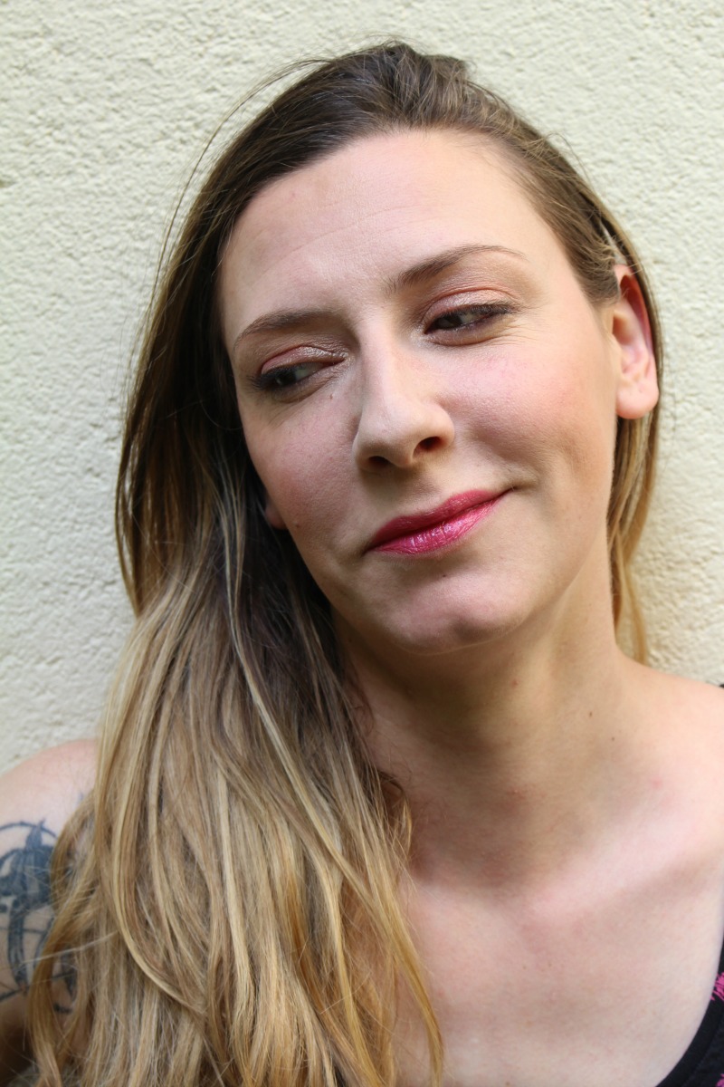 Portés et à la lumière du jour, ça donne ça avec le côté “clair” du bronzer, le blush Sparkling Bellini et le coin gauche du Peach Beach en Highlighter :