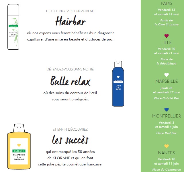 Gardez aussi en tête que les 3 et 4 Juin, le POP-UP Klorane sera de passage à Montpellier avec ateliers et découvertes, un rendez-vous sympa pour prendre soin de vous et découvrir les best-seller de la marque qui fête cette année ses 50 ans !