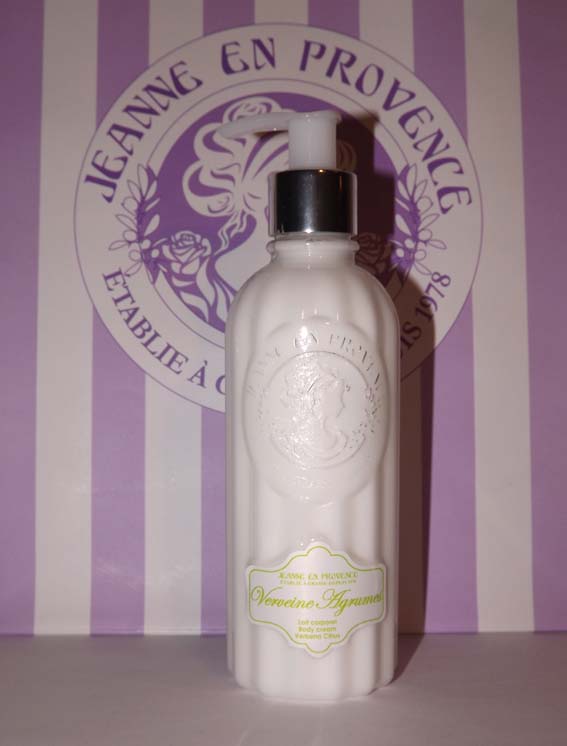 Vous savez que j’aime les jolis packagings, mais si en plus ils renferment de bons produits et qu’ils ont un prix raisonnable, moi je dis Youpiiii !! C’est le cas des produits dont je vais vous parler aujourd’hui, ils sont très jolis et leur prix est canon ♥ Il s’agit du Gel douche et du Lait Corporel Verveine Agrumes de Jeanne en Provence (Jeanne Arthes). La marque est établie à Grasse depuis 1978 et propose tout une gamme de parfums d’ambiance, bougies, gels douches, soins pour le corps et savons. Ce qui m’a d’abord emballée, j’avoue…ce sont les packagings, délicats, féminins, un poil vintage, des flacons charmants avec un joli camé en relief sur le devant…Ralala…exactement tout ce que j’aime.