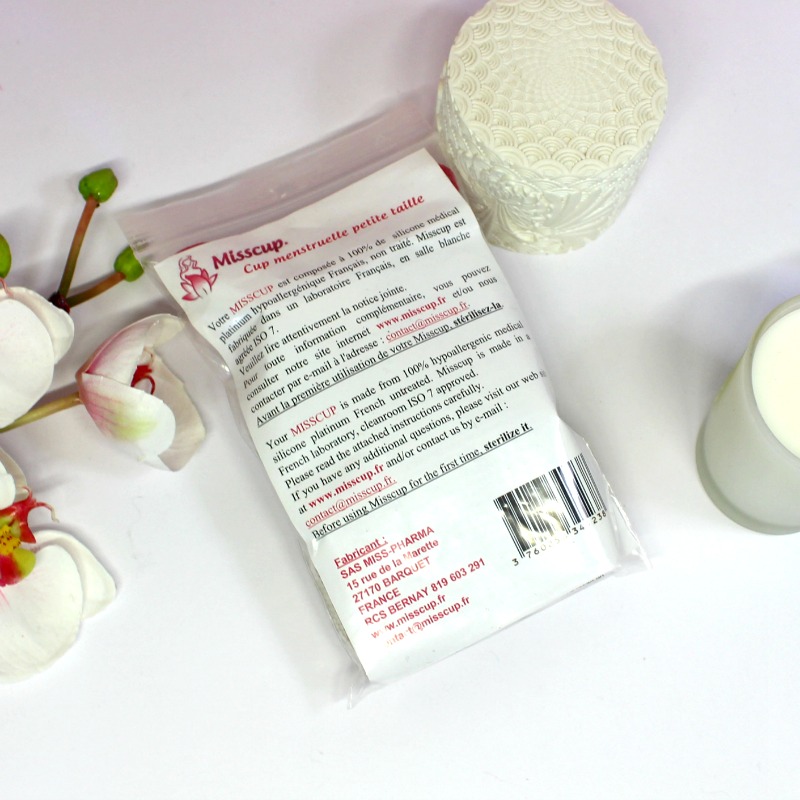 Au cas ou vous ne sauriez pas de quoi je vous cause, la Cup, c’est un petit récipient souple en silicone médical, lavable et réutilisable, qui remplace les protections traditionnelles (tampons, serviettes…) quand on a ses règles. La Misscup est fabriquée en France, elle est en silicone médical platinium hypoallergénique non traité et elle existe en 2 tailles et deux couleurs (blanche ou rose), j’ai pris la plus petite.
