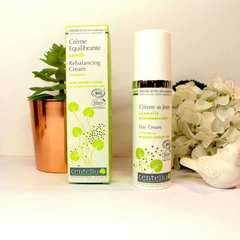 Pour la Crème, j’ai utilisé la Crème Équilibrante à la cannelle de Centella qui a duré super longtemps pour un format 40 ml (plusieurs mois). C’est une crème fluide en flacon pompe, qui pénètre assez vite, sans laisser la peau grasse mais qui hydrate tout de même au passage. Elle contient des Huiles d’amande douce, de noisette (régulatrice), de l’eau florale de lavande, de l’extrait de Centella asiatica, des huiles essentielles de citron, romarin, sauge, camomille, cyprès, orange douce, orange amère, thym…