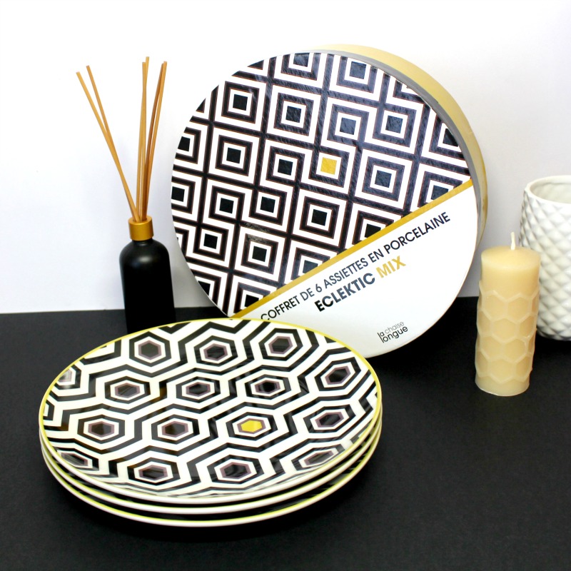 On trouve aussi des objets pour la cuisine très jolis comme ce set d’assiettes de la collection Eclektic Mix, que j’ai pu choisir dans la sélection cadeaux. C’est une belle boîte qui contient 6 assiettes avec 3 design différents (2 de chaque donc ^^).